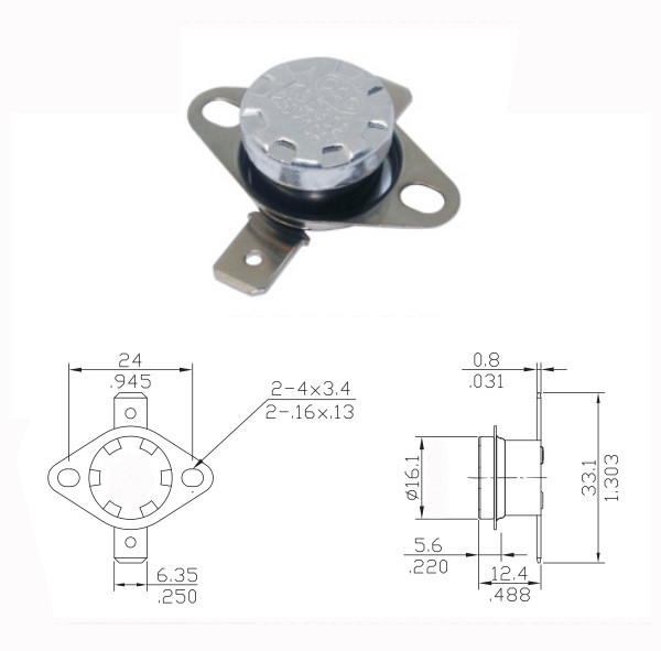 Термостат біметалічнийий 10A 250VAC, нормально розімкнутий, темп. спрацювання 100±5 градусів Цельсія, темп. відновленняя 75±6 градусів